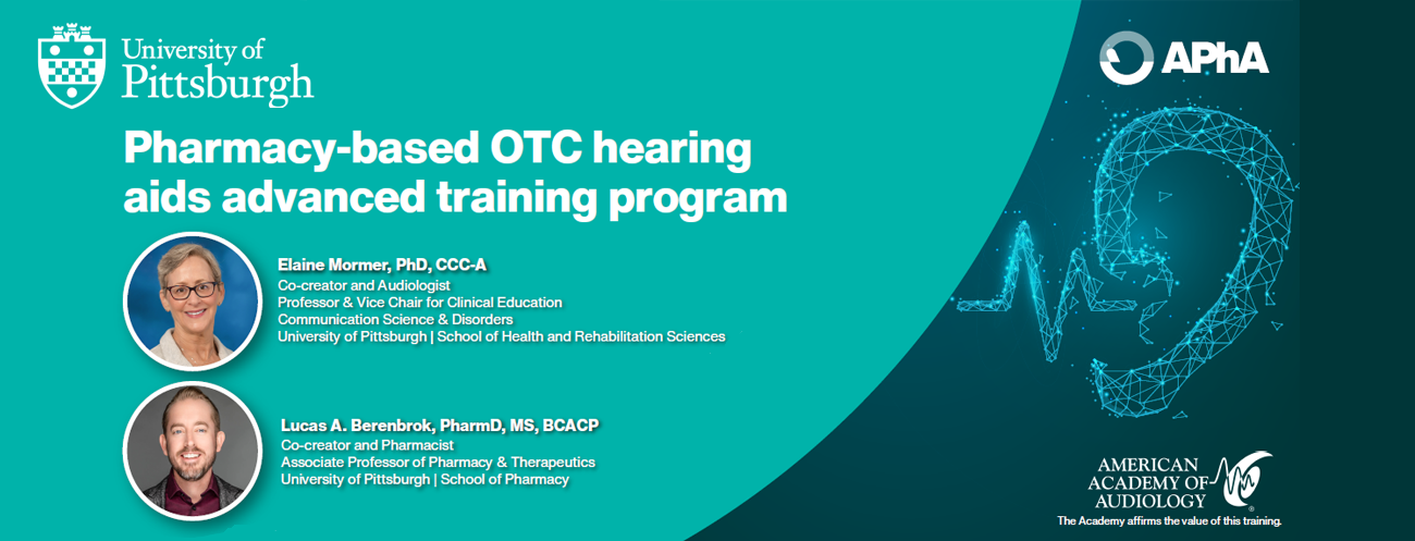 This 3-hour competency-based, interprofessional advanced training program on over-the counter (OTC) hearing aids developed by University of Pittsburgh faculty is suited for both pharmacists and student pharmacists. The self-paced eLearning program will review epidemiology of hearing loss, laws and regulations related OTC hearing aids, and the pharmacists’ OTC hearing aid patient care process. At the end of this training, pharmacists will discover how to recognize, intervene, and refer patients with hearing loss to hearing healthcare. Enroll Now |